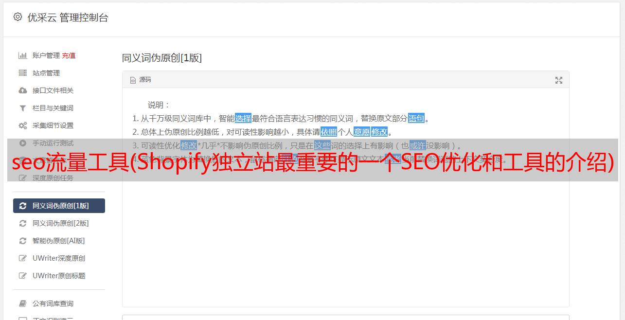 优采云 发布时间: 2021-09-10 01:11seo流量工具(Shopify独立站最重要的一个SEO优化和工具的介绍)