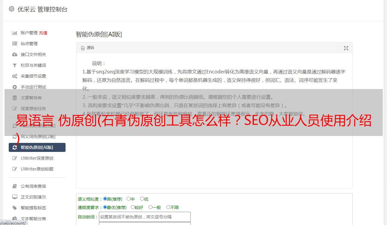易语言 伪原创(石青伪原创工具怎么样?SEO从业人员使用介绍 )