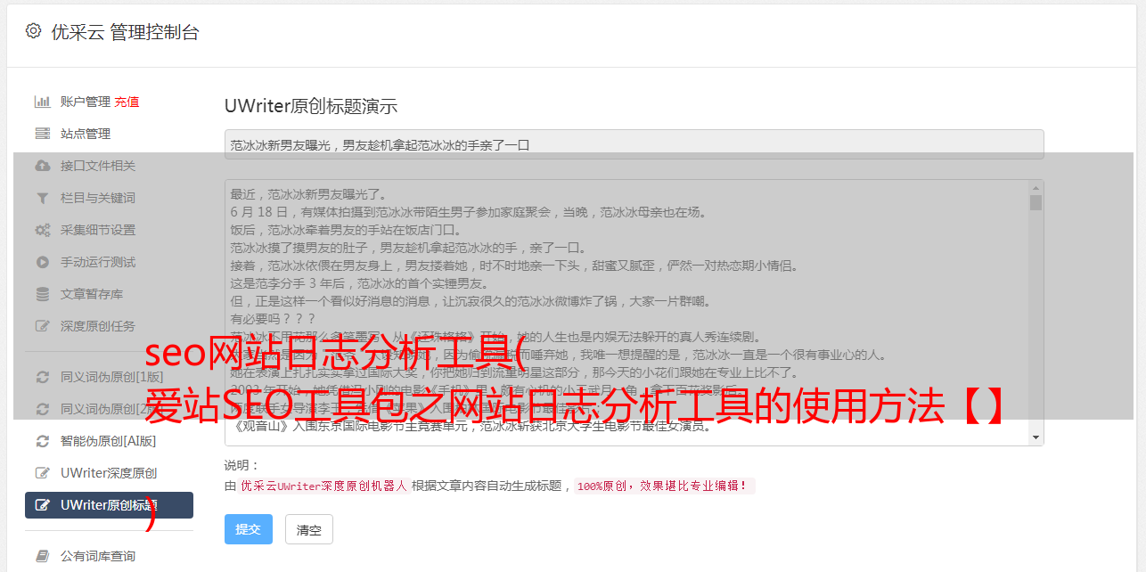 优采云 发布时间: 2021-09-10 05:14seo网站日志分析工具(
