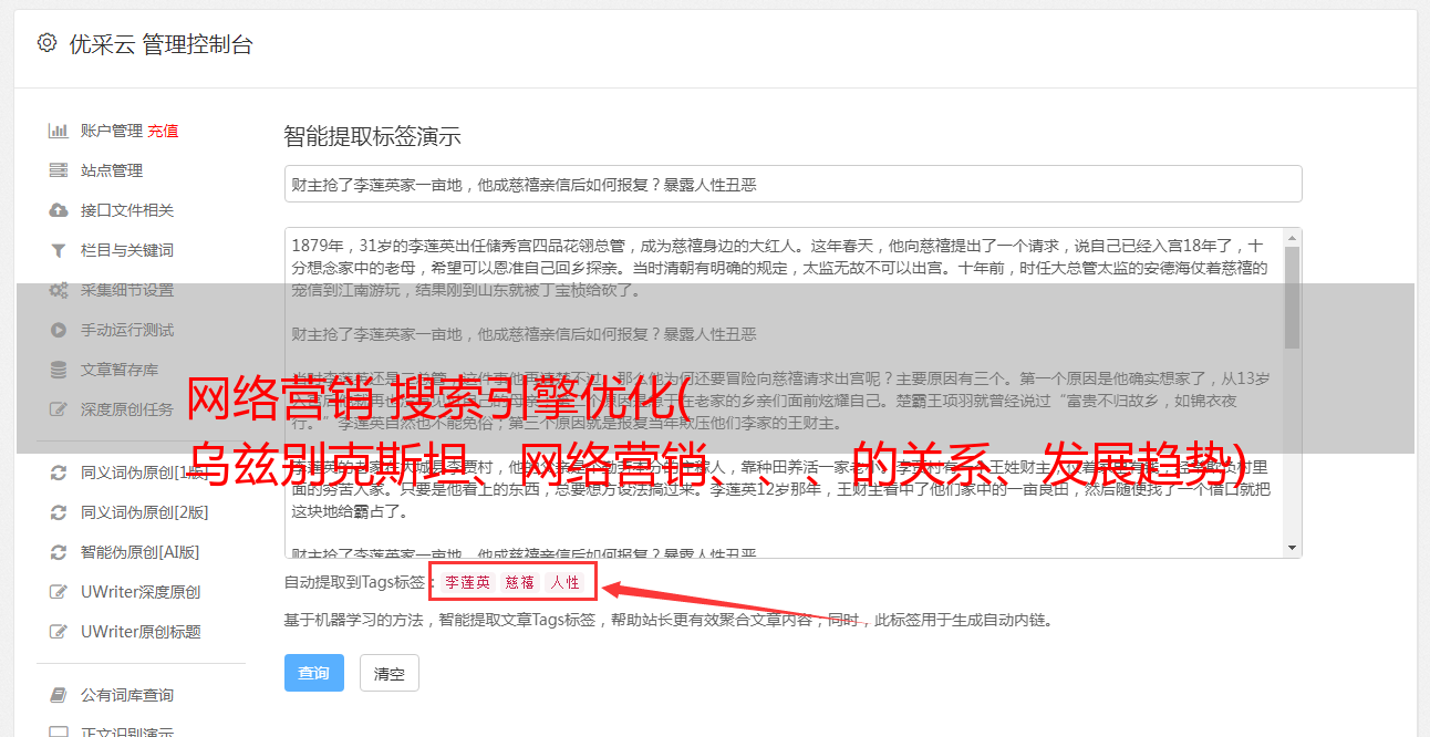 第四个是网站自己的推广。通过网站外的一系列活动(文章目录、论坛、书签等),为网站内部优化引入资源。其主要任务是提高网站的参考价值以满足客户需求,增加网站的可信度。这是网站 推广或外部网站 优化。外部因素分为静态因素和动态因素。静态因素根据网站对外部网络资源的引用及其权限决定网站的相关性,不考虑文本引用。动态因素根据网站对外部网络资源的引用及其权限决定网站的相关性,并考虑文本引用。