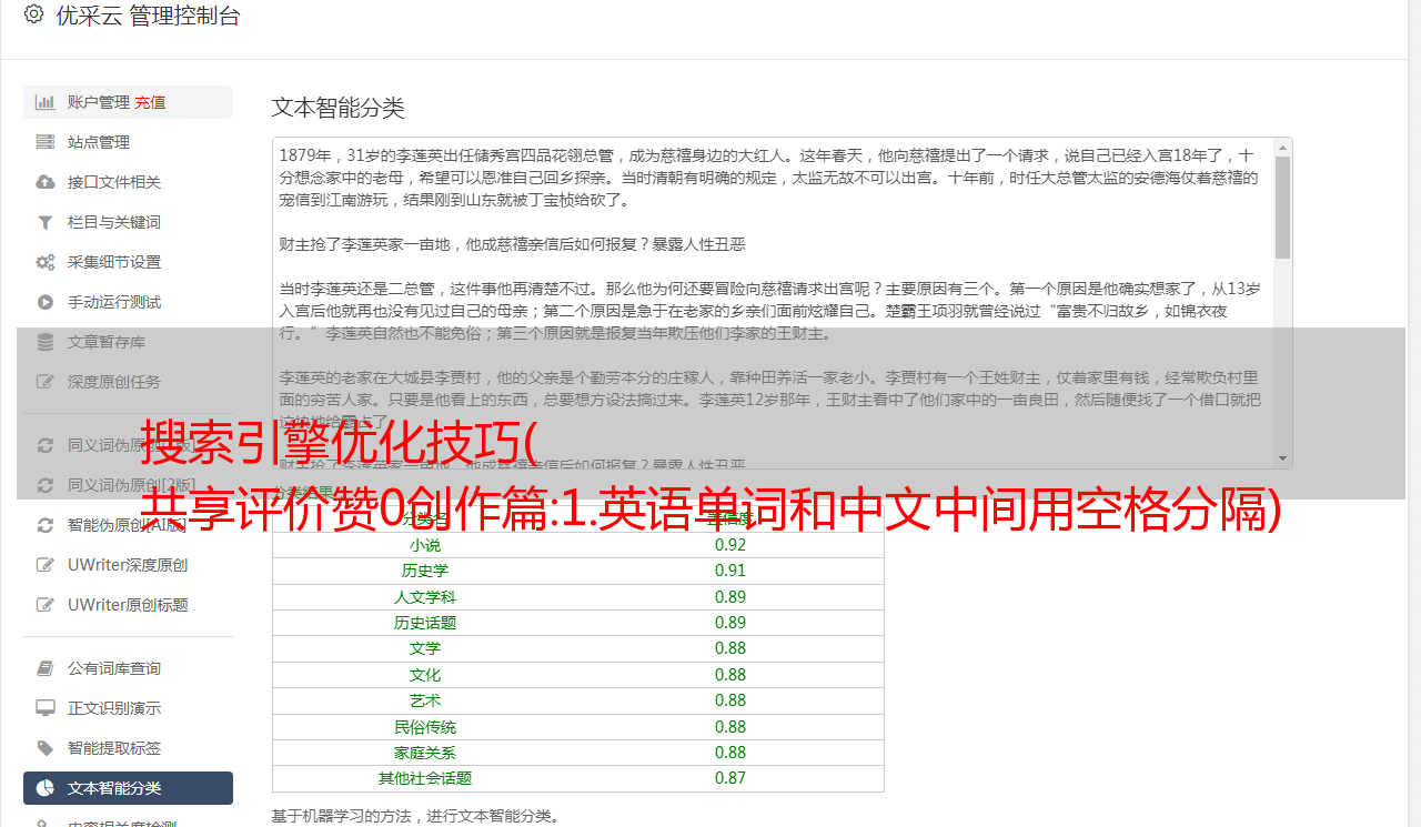 搜索引擎优化技巧( 共享评价赞0创作篇:1.英语单词和中文中间用空格分隔)