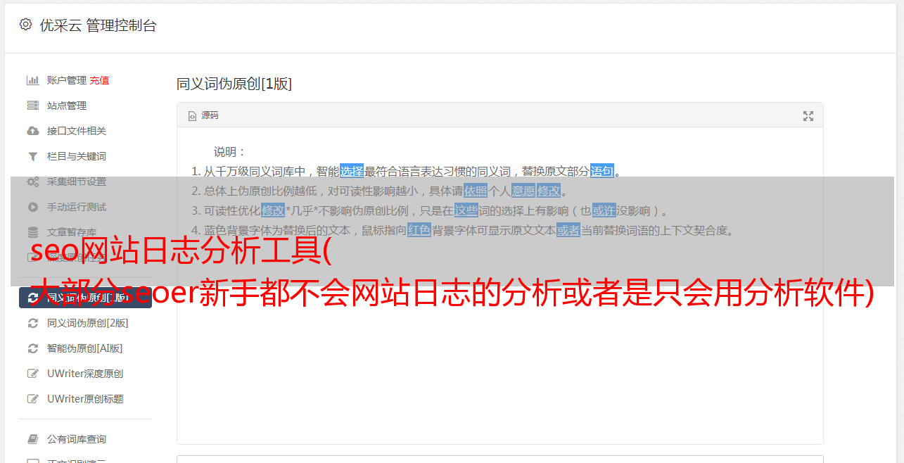 优采云 发布时间: 2021-09-10 11:16seo网站日志分析工具(
