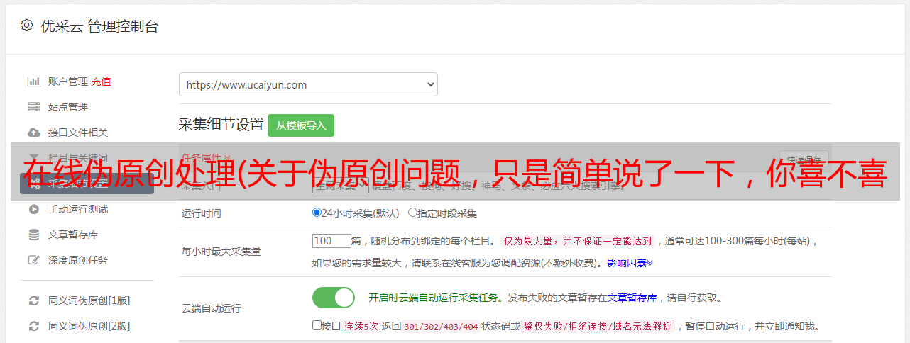 优采云 发布时间: 2021-09-10 15:16在线伪原创处理(关于伪原创问题,只是简单说了一下,你喜不喜欢?)
