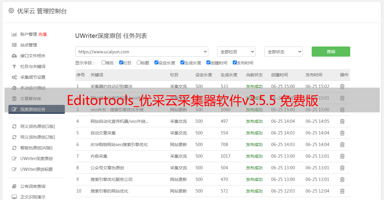 Editortools_优采云采集器软件是一款十分出众的全手动无人值守采集软件,软件可以帮你轻松实现无人值守采集网站信息,全天实时监控并采集,实时为您提供内容更新,支持任意类型网站采集,支持任意格式文件下载,可以采集音乐、图片、文档、电影等各类文件资源。采集下来的文章可以进行快速的伪原创,只需设置好方案,即可手动工作,非常便捷好用,是网站站长的好助手,需要的同学快来愿望软件站下载使用吧!