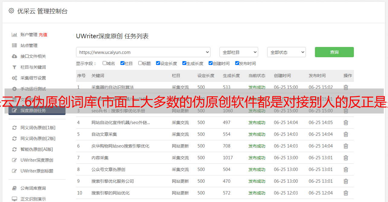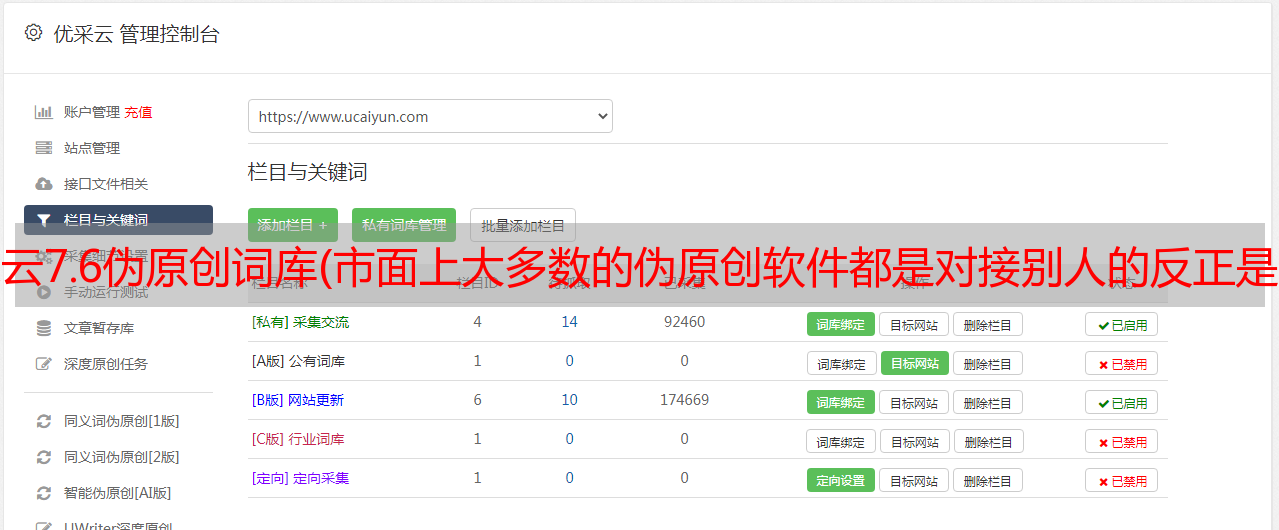 优采云7.6伪原创词库(市面上大多数的伪原创软件都是对接别人的反正是别人 )