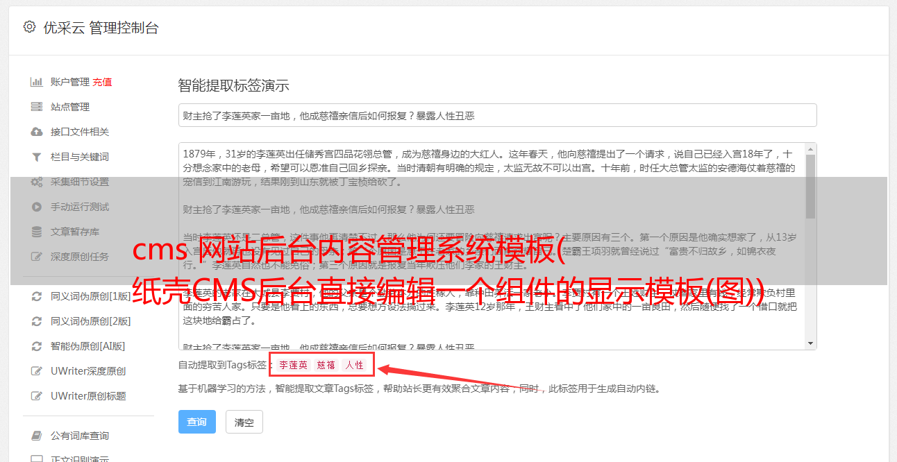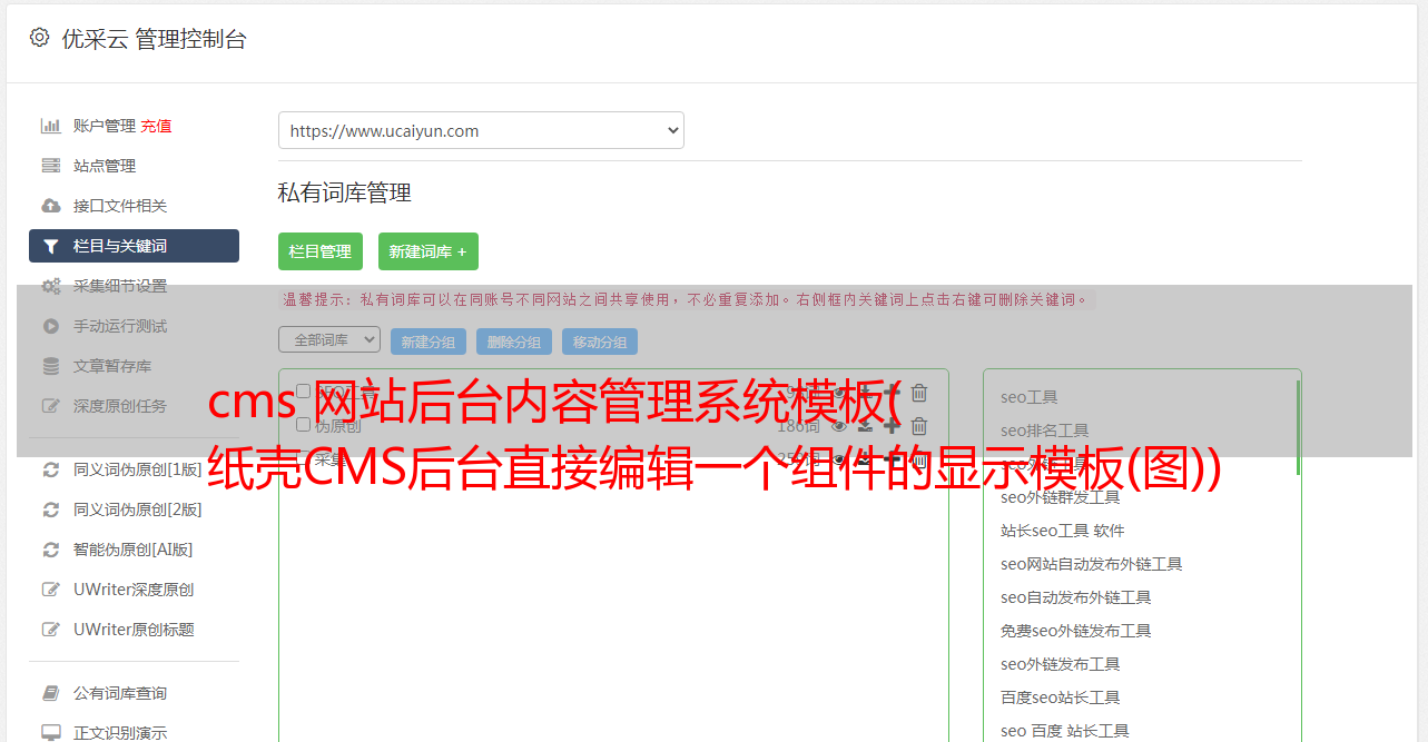 cms 网站后台内容管理系统模板( 纸壳CMS后台直接编辑一个组件的显示模板(图))