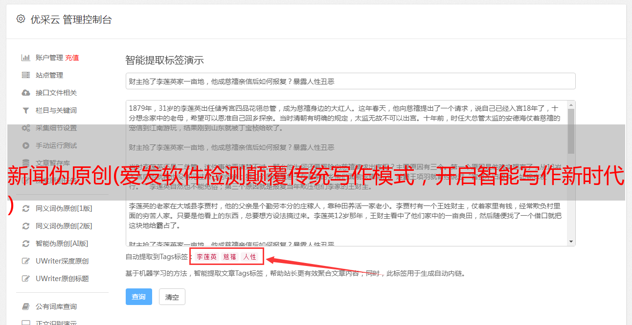 优采云 发布时间: 2021-09-11 11:06新闻伪原创(爱发软件检测颠覆传统写作模式,开启智能写作新时代