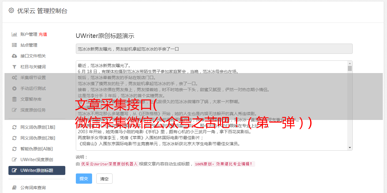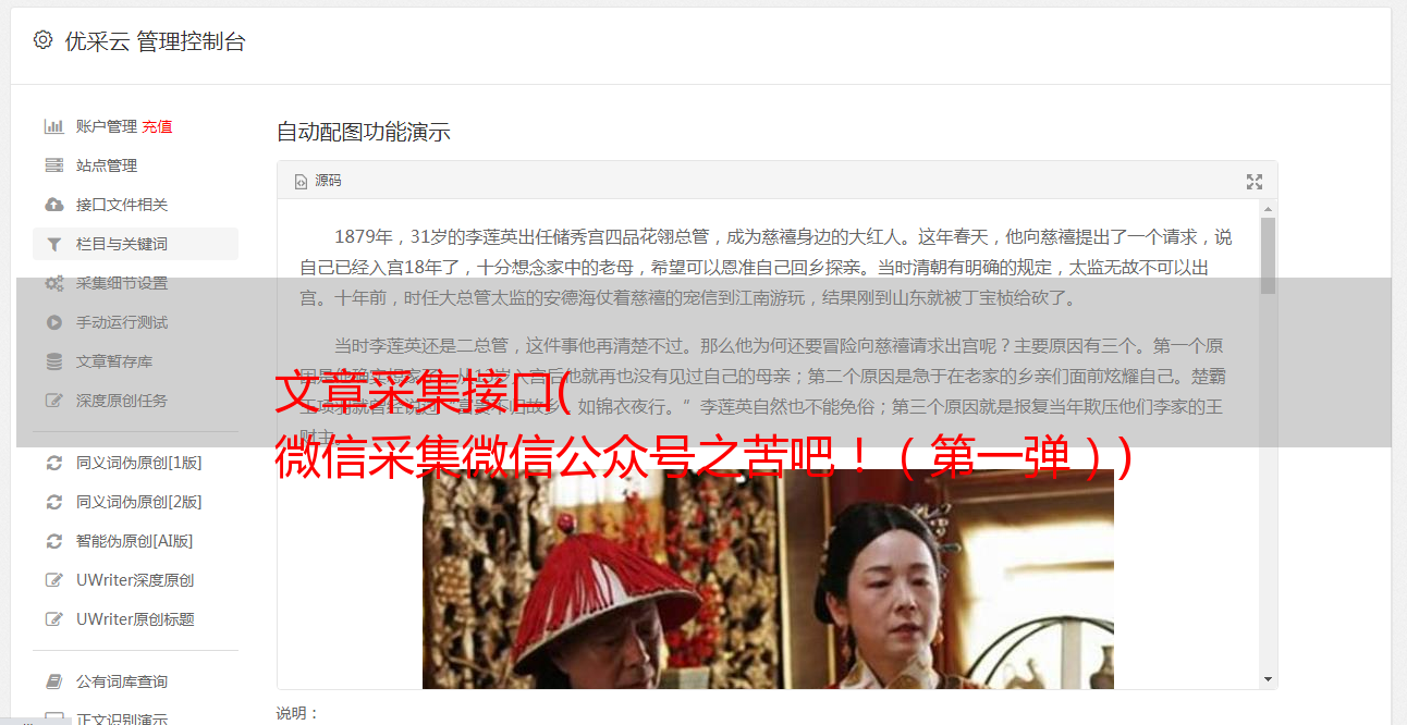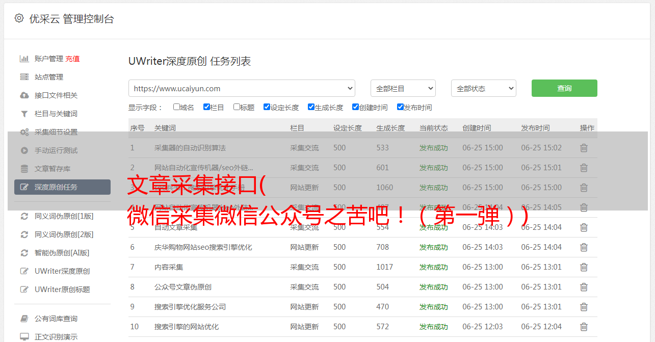 优采云 发布时间: 2021-09-11 21:04文章采集接口(