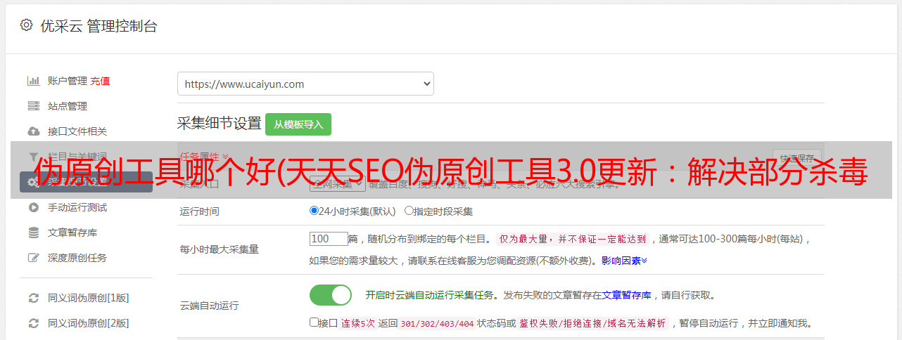 优采云 发布时间: 2021-09-12 05:07伪原创工具哪个好(天天SEO伪原创工具3.0更新:解决部分杀毒软件误报问题)