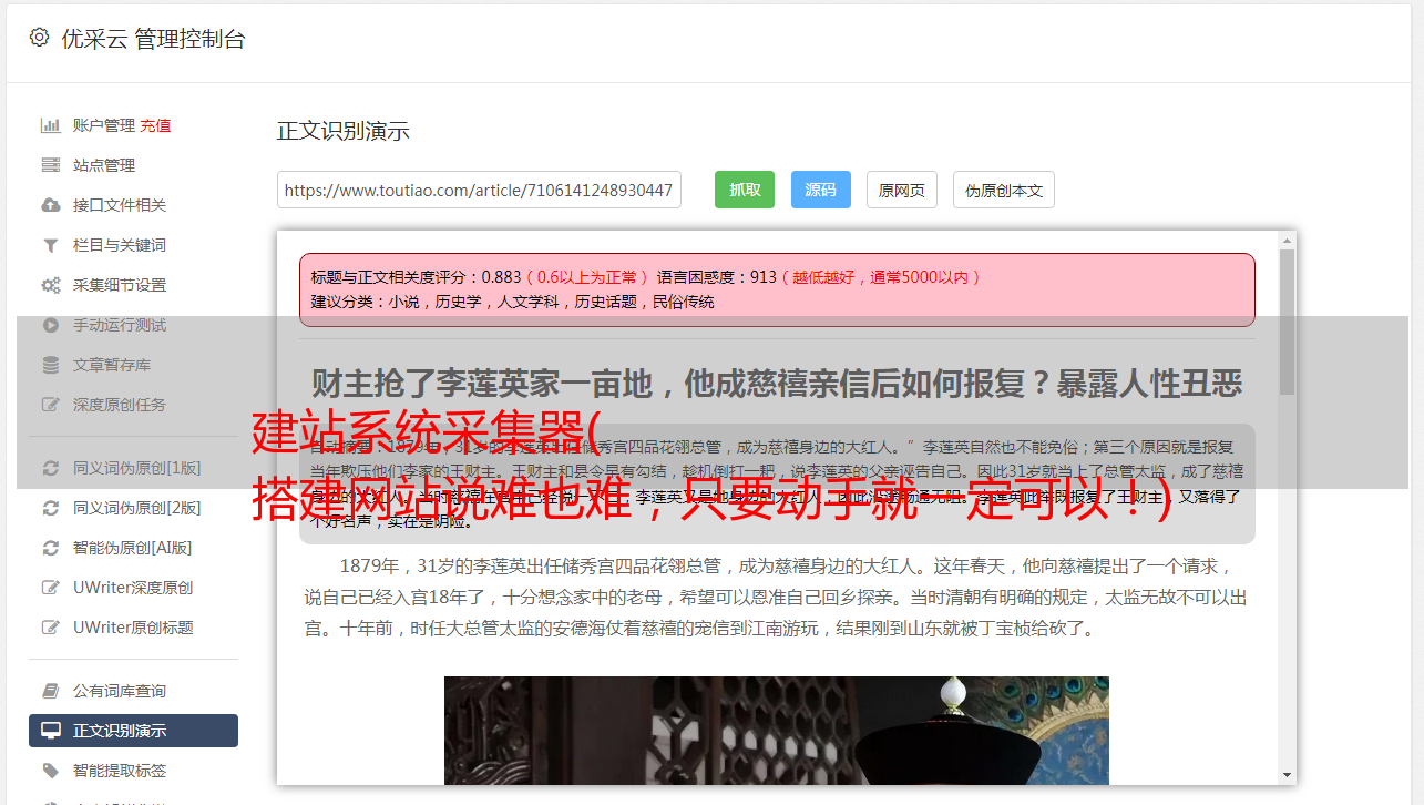 优采云 发布时间: 2021-09-12 10:04建站系统采集器(