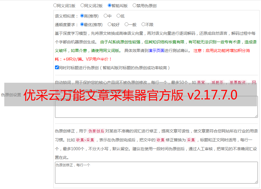 优采云万能文章采集器2.15.8.0更新日志(2017年3月24号)