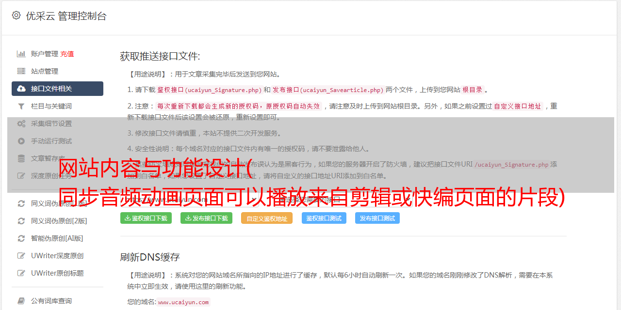 网站内容与功能设计( 同步音频*敏*感*词*页面可以播放来自剪辑或快编页面的片段)