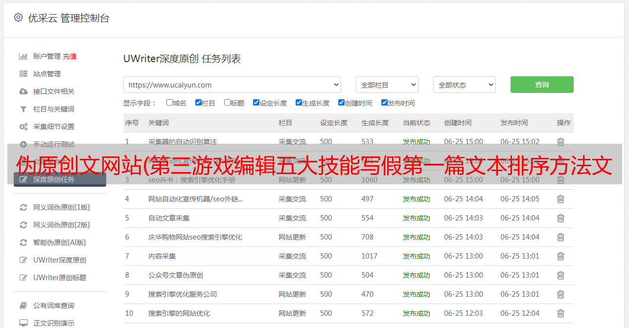 优采云 发布时间: 2021-09-12 23:10伪原创文网站(第三游戏编辑五大技能写假第一篇文本排序方法文本方法)
