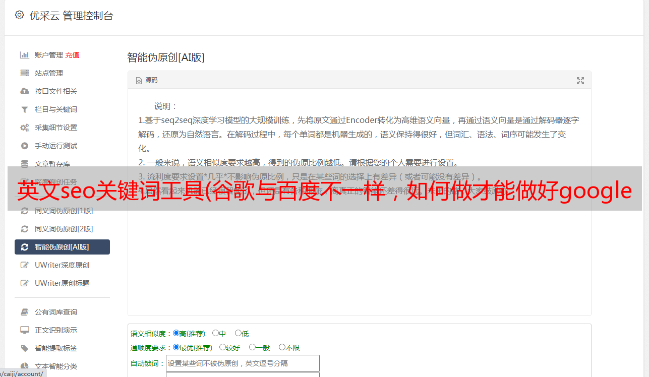 优采云 发布时间: 2021-09-13 15:14英文seo关键词工具(谷歌与百度不一样,如何做才能做好google的优化)