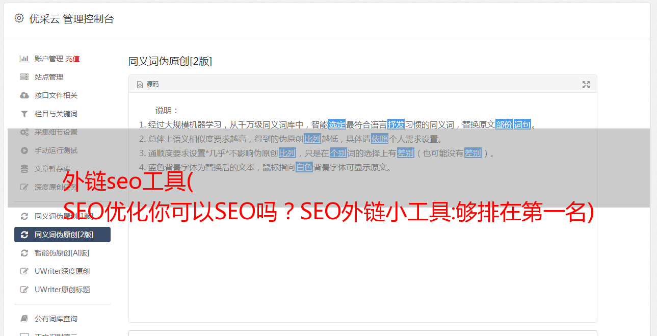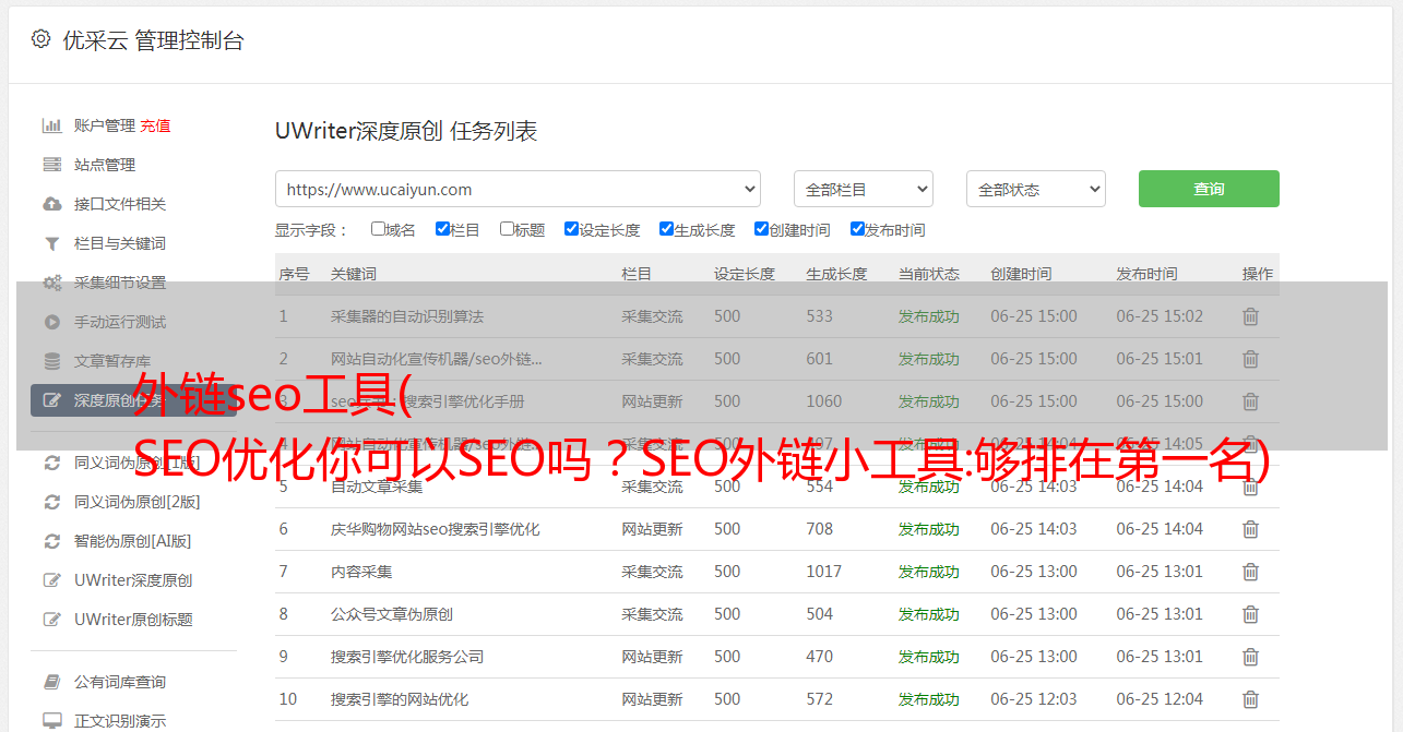 优采云 发布时间: 2021-09-13 16:14外链seo工具(
