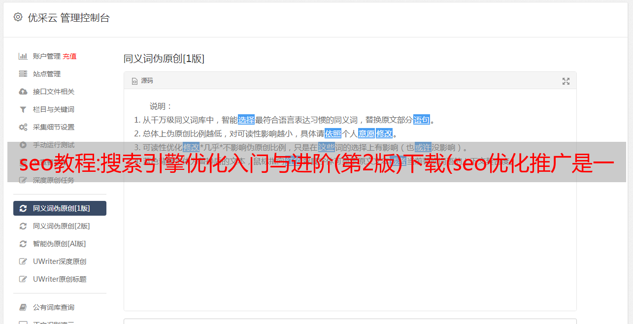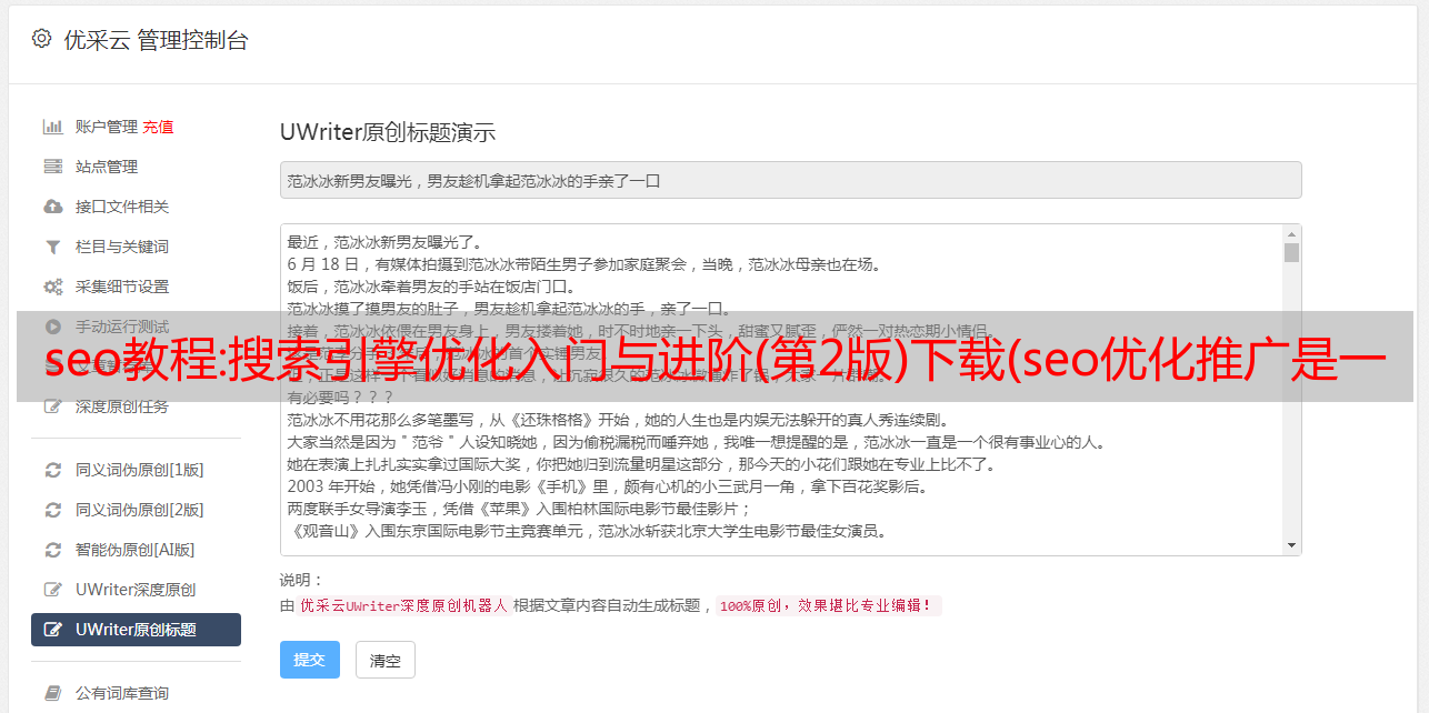 优采云 发布时间: 2021-09-13 17:15seo教程:搜索引擎优化入门与进阶(第2版)下载(seo优化推广是一个烦人的事情啊喂,怎么办?