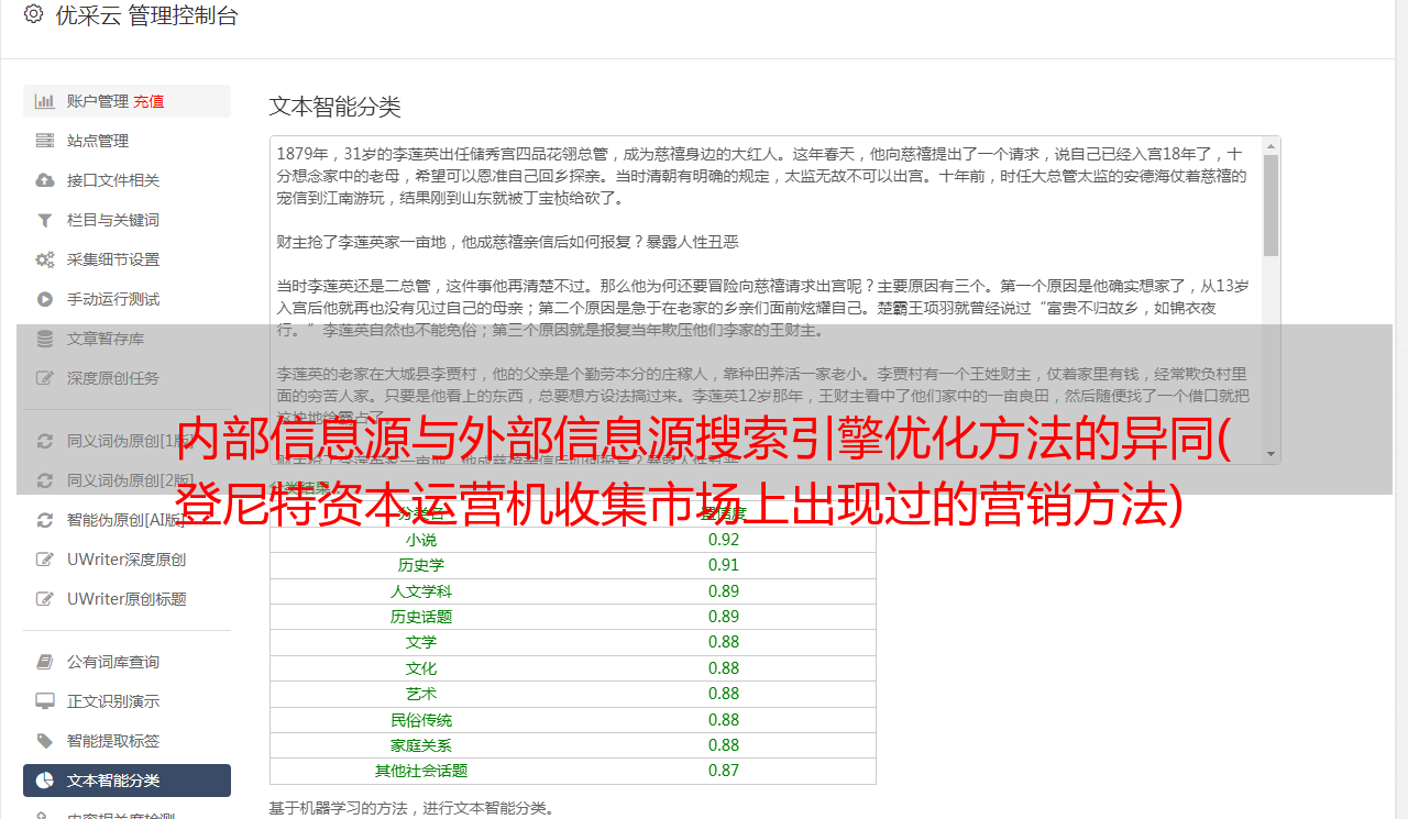 优采云 发布时间: 2021-09-13 18:03内部信息源与外部信息源搜索引擎优化方法的异同(