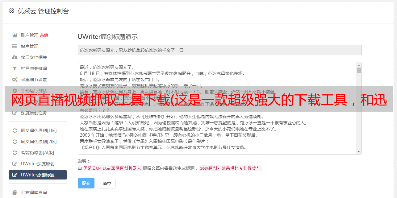 优采云 发布时间: 2021-09-13 18:06网页直播视频抓取工具下载(这是一款超级强大的下载工具,和迅雷是互补关系)