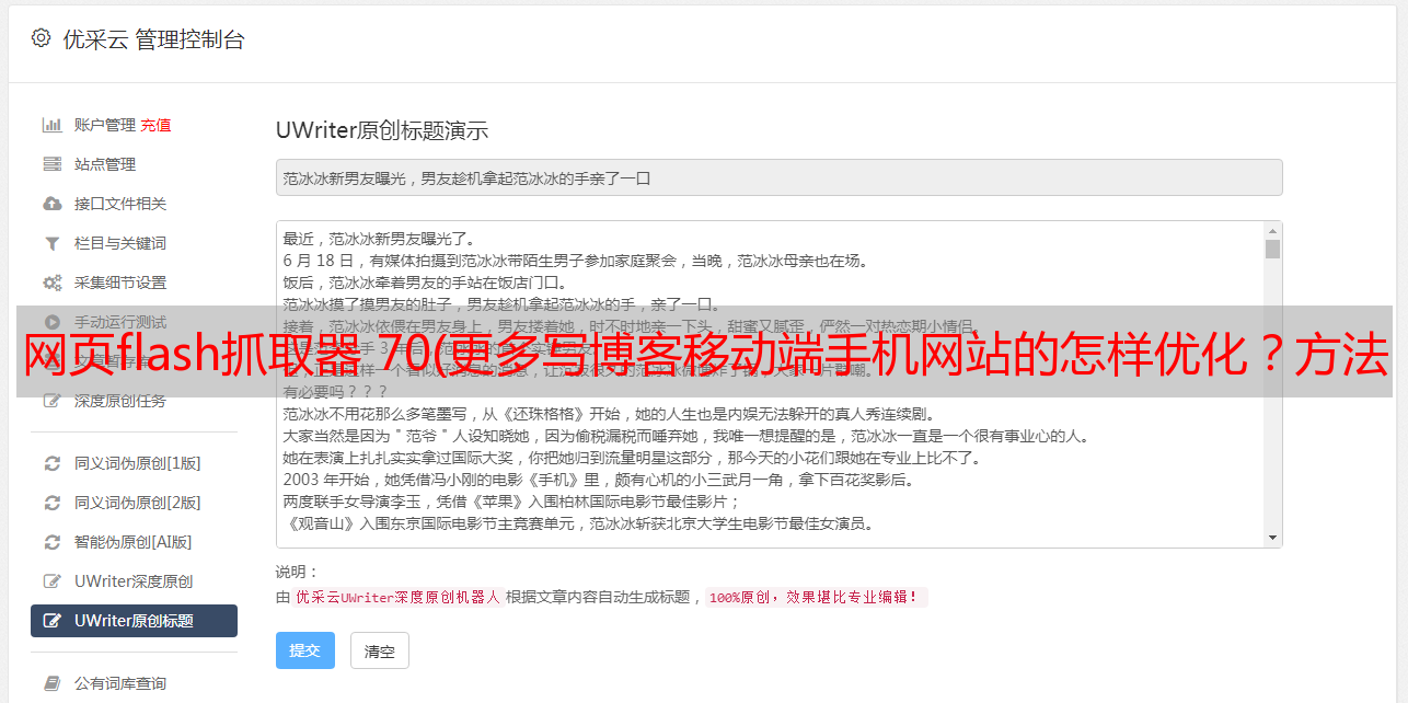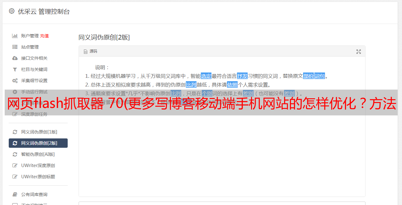 优采云 发布时间: 2021-09-13 20:12网页flash抓取器 70(更多写博客移动端手机网站的怎样优化?方法攻略篇(组图))