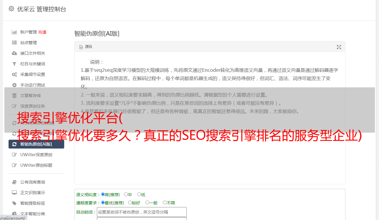 优采云 发布时间: 2021-09-13 20:17搜索引擎优化平台(