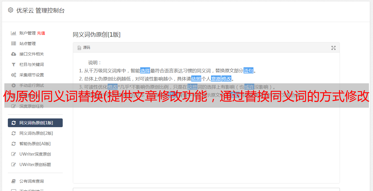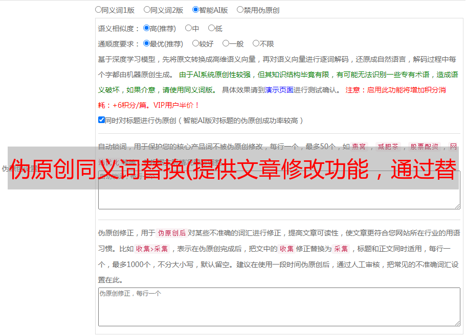 伪原创同义词替换(提供文章修改功能,通过替换同义词的方式修改网上复制 )