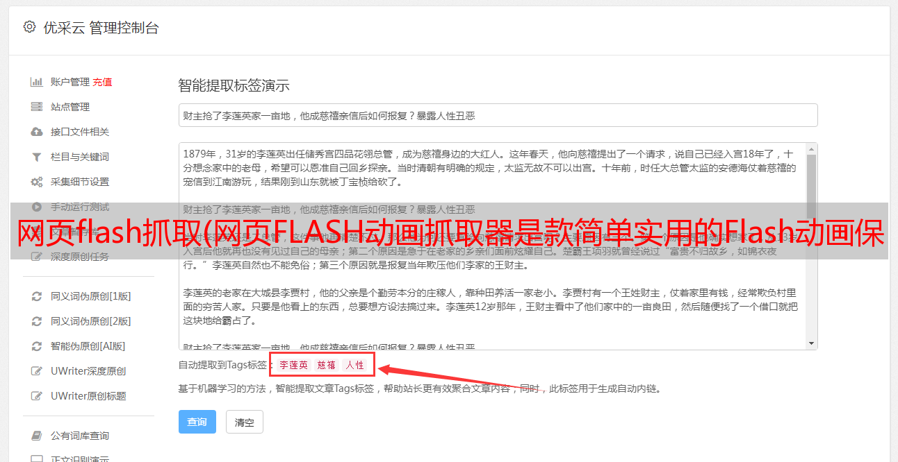 优采云 发布时间: 2021-09-14 01:12网页flash抓取(网页FLASH*敏*感*词*抓取器是款简单实用的Flash*敏*感*词*保存软件