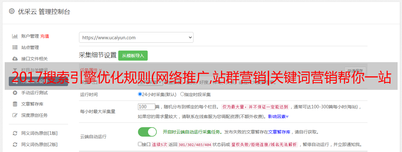 优采云 发布时间: 2021-09-14 01:152017搜索引擎优化规则(网络推广,站群营销|关键词营销帮你一站式搞定)