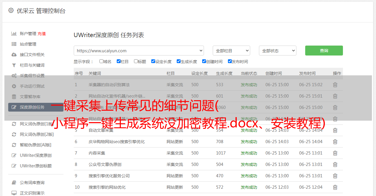 优采云 发布时间: 2021-09-14 02:04一键采集上传常见的细节问题(