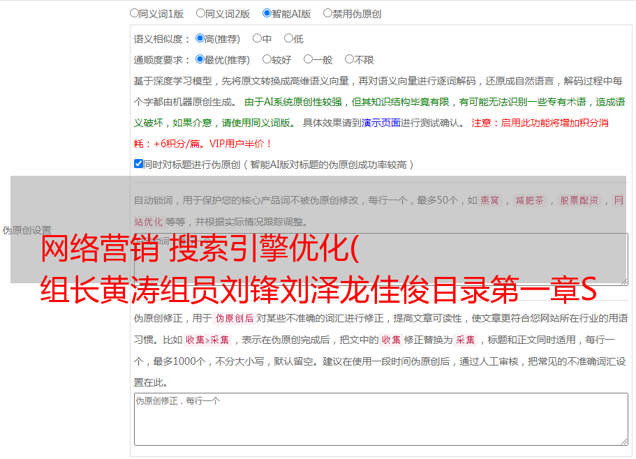 我的知识得到了扩展。第4章SEO的基本策略----刘泽关键词策网页优化策略第5章SEO实施的步骤----龙家君SEO SEO的主要步骤选择好关键可以说是适合等于成功的一半。好的关键词定位会大大减少后期SEO的工作量。平时如果你是公众号网站,可以参考搜索引擎的排名选择好的流量关键词分析网站architecture网站directory 和页面优化 1 淘汰网站bad 架构设计 2 实现树-like 目录结构 3网站navigation 和链接优化 1 代码优化 2网站 图片优化 3 表格布局优化 4 目录结构优化 5 搜索引擎优化的链接布局和内容发布链接布局将整个网站有机连接起来让搜索引擎了解每个网页的重要性以及关键词实施的参考是关键词布局的第一点 友情链接战也在此时开始与搜索引擎的对话。链接布局将整个网站有机连接起来,让搜索引擎了解每个网络