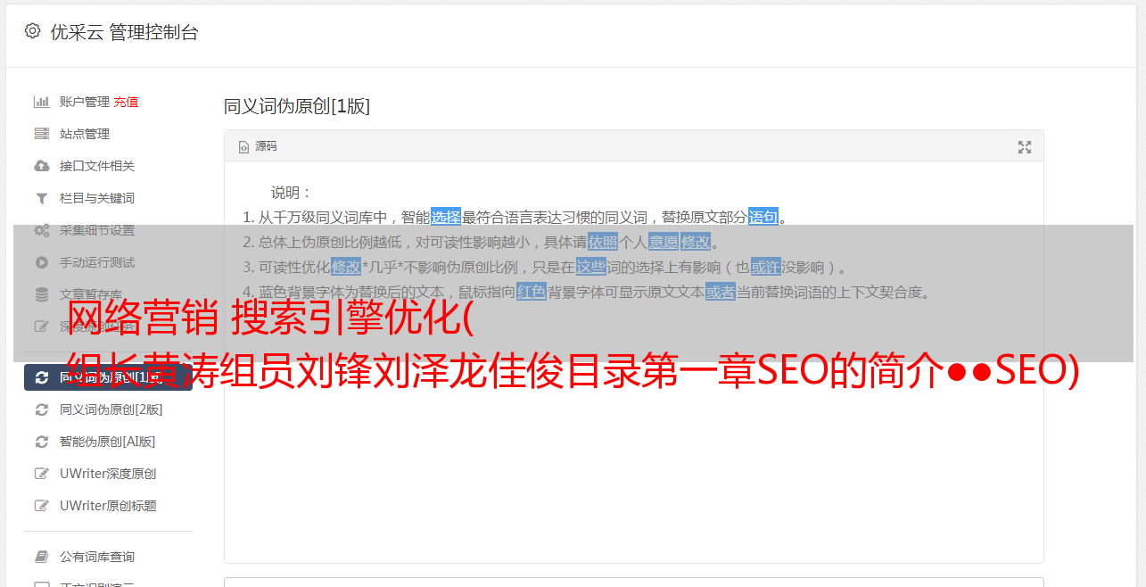 组长黄涛组员刘锋刘泽龙佳俊目录第一章SEO的简介●●SEO)