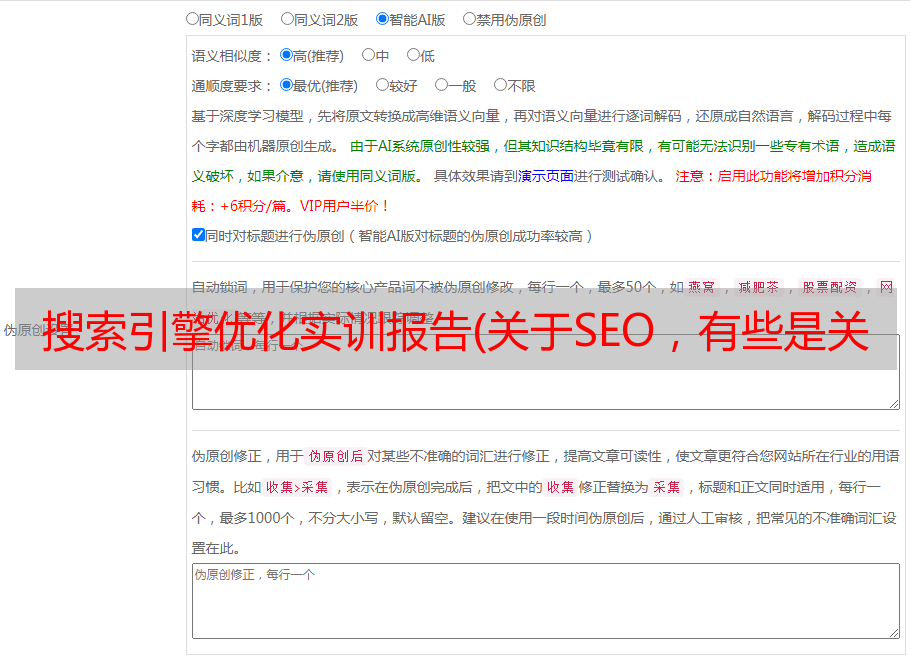 正文内容中的5.关键词自动加粗,插入的关键词也可以自定义。但是没有所谓的“伪原创”功能影响可读性,比如句子重排、段落重排。