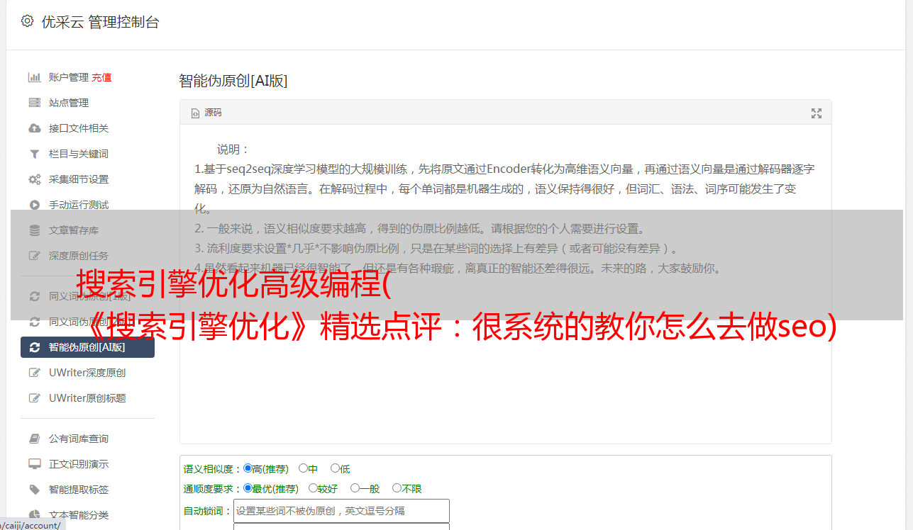 优采云 发布时间: 2021-09-14 07:19搜索引擎优化高级编程(