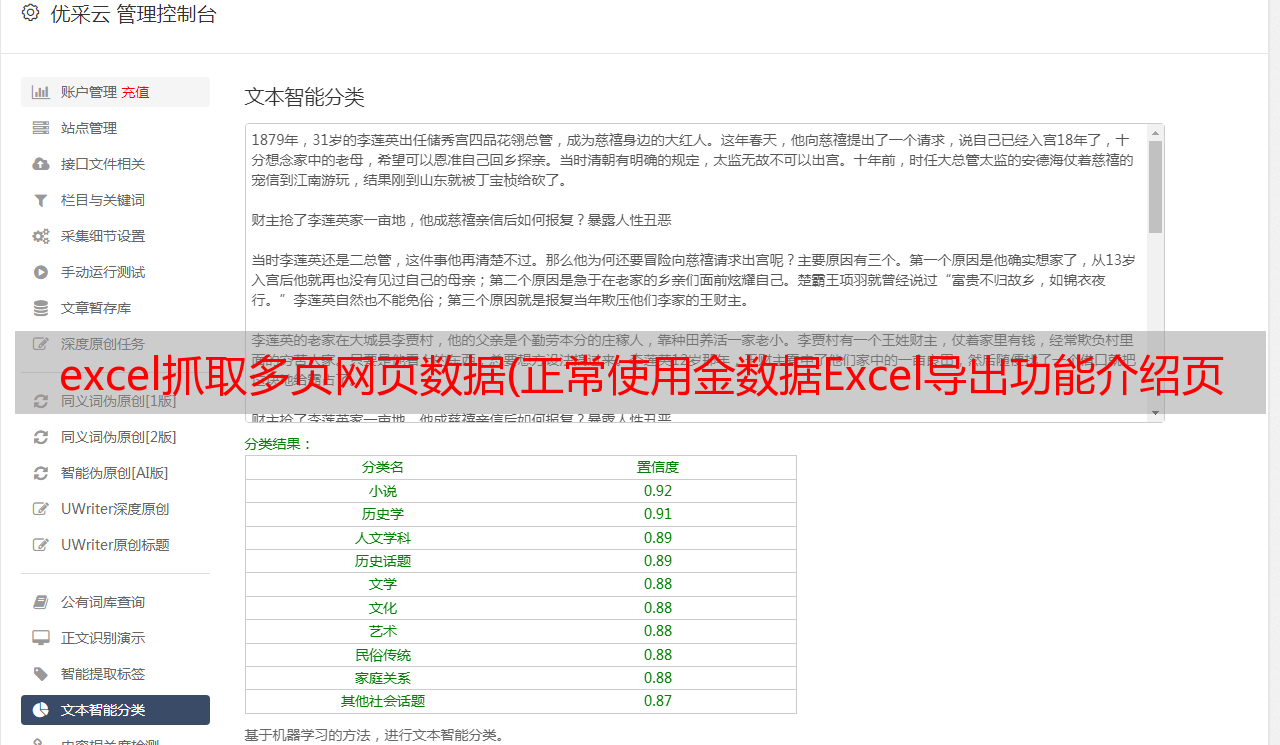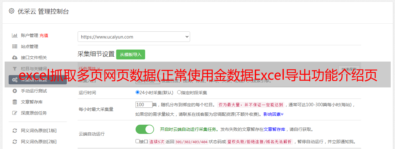 优采云 发布时间: 2021-09-14 07:22excel抓取多页网页数据(正常使用金数据Excel导出功能介绍页,开启【分享结果】)