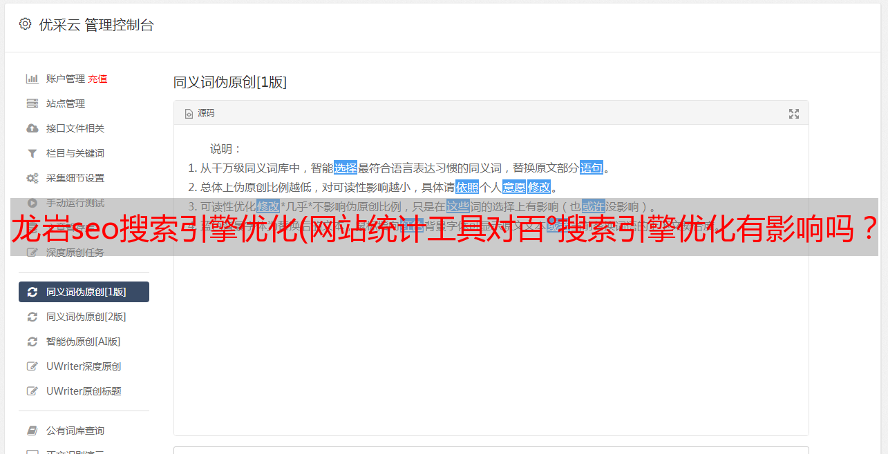 优采云 发布时间: 2021-09-14 10:14龙岩seo搜索引擎优化(网站统计工具对百°搜索引擎优化有影响吗?(图))