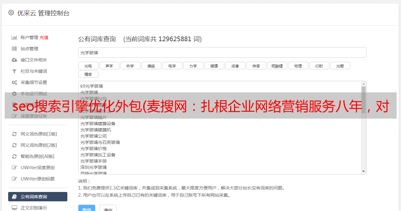 优采云 发布时间: 2021-09-14 10:16seo搜索引擎优化外包(麦搜网:扎根企业网络营销服务八年,对于《》有自己独到的见解)