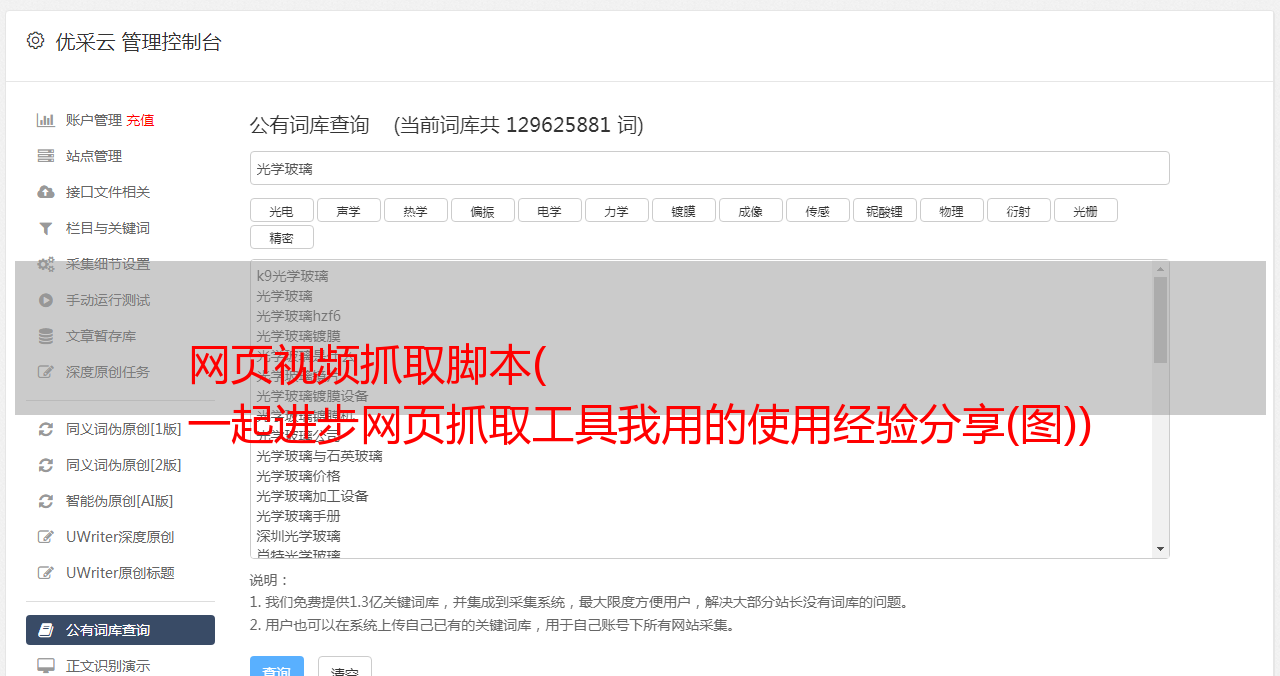 优采云 发布时间: 2021-09-14 11:19网页视频抓取脚本(