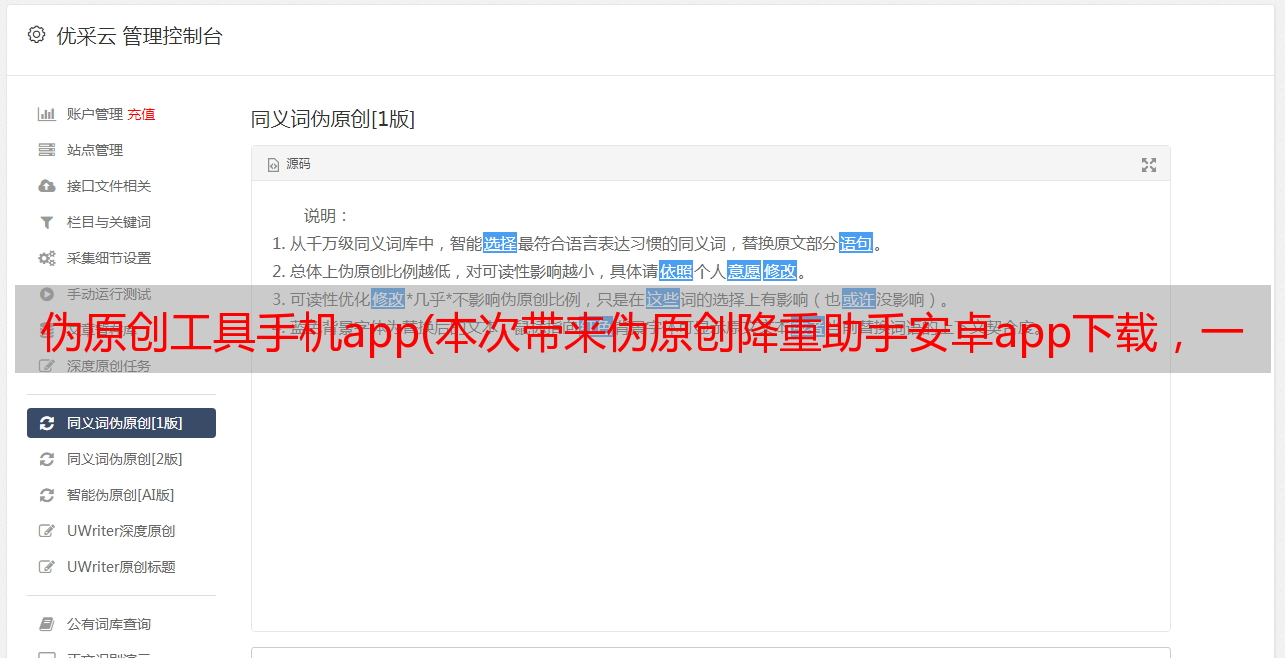 伪原创工具手机app(本次带来伪原创降重助手安卓app下载,一键轻松转换)