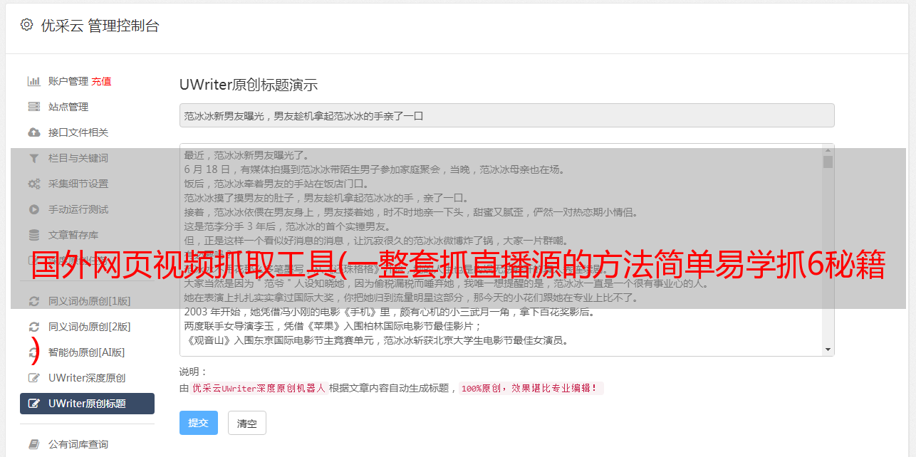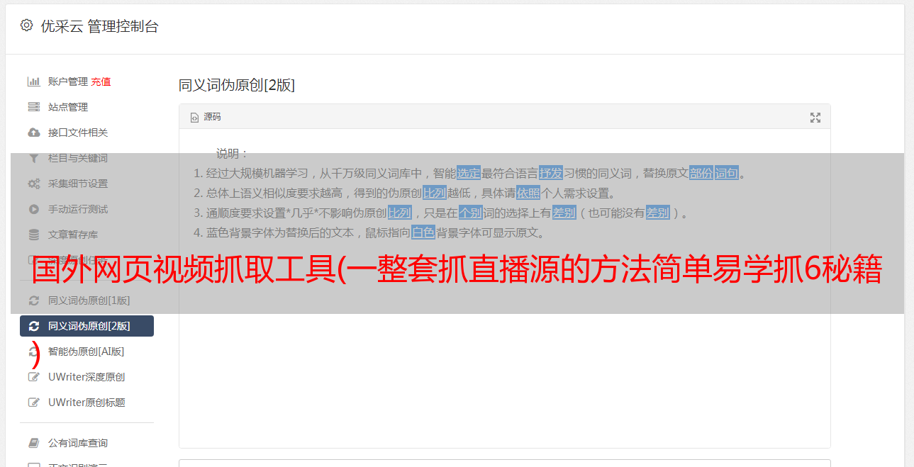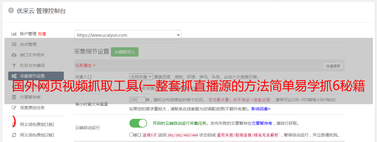 优采云 发布时间: 2021-09-14 20:02国外网页视频抓取工具(一整套抓直播源的方法简单易学抓6秘籍