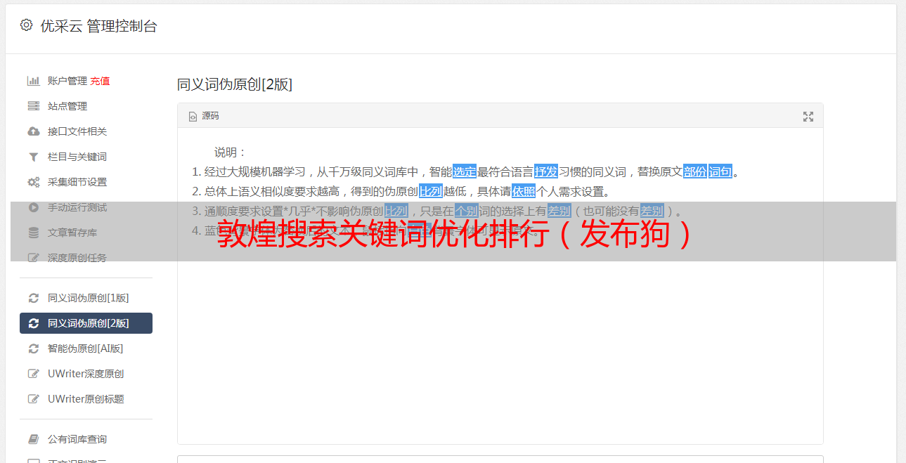 优采云 发布时间: 2020-08-24 04:28敦煌搜索关键词优化排行(发布狗)