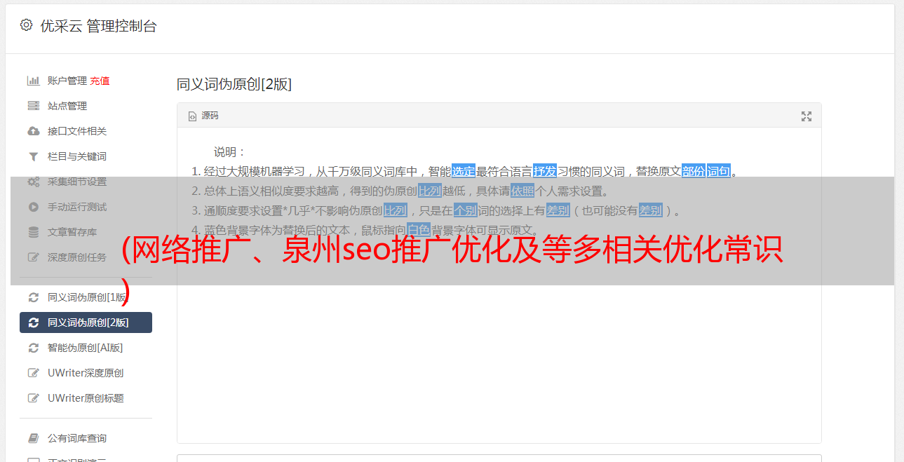 优采云 发布时间: 2021-09-15 00:13(网络推广、泉州seo推广优化及等多相关优化常识