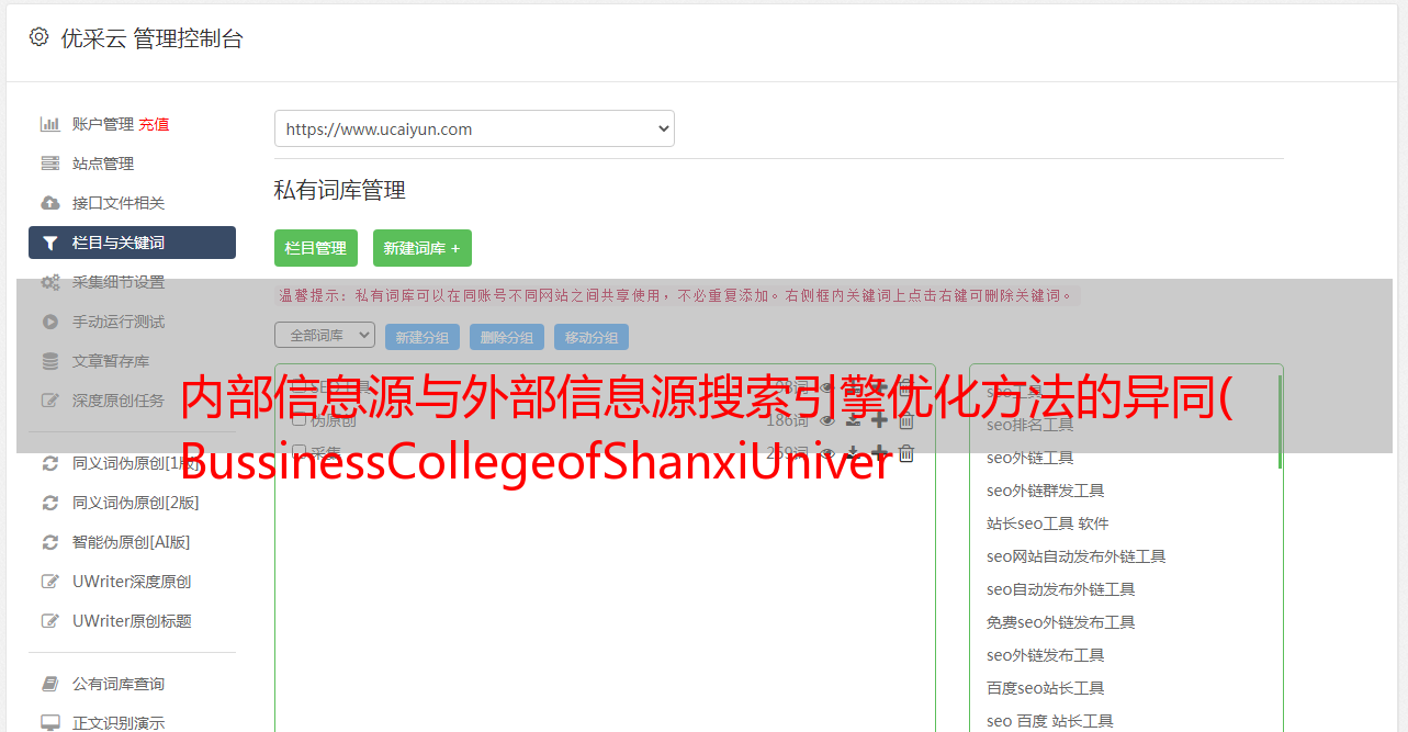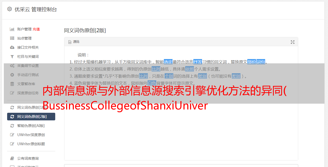 优采云 发布时间: 2021-09-15 01:02内部信息源与外部信息源搜索引擎优化方法的异同(
