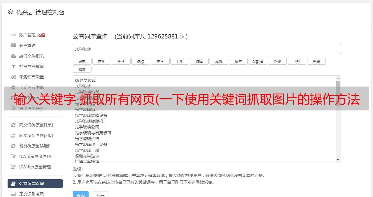 输入关键字 抓取所有网页(一下使用关键词抓取图片的操作方法分享的方法步骤吧!)