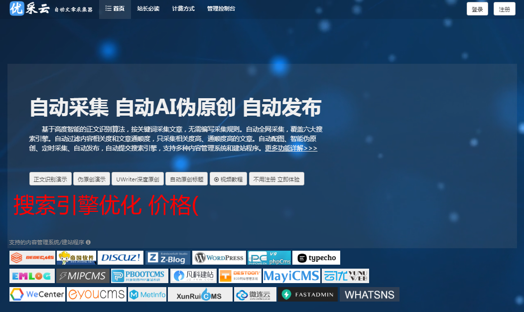 优采云 发布时间: 2021-09-15 05:09搜索引擎优化 价格(