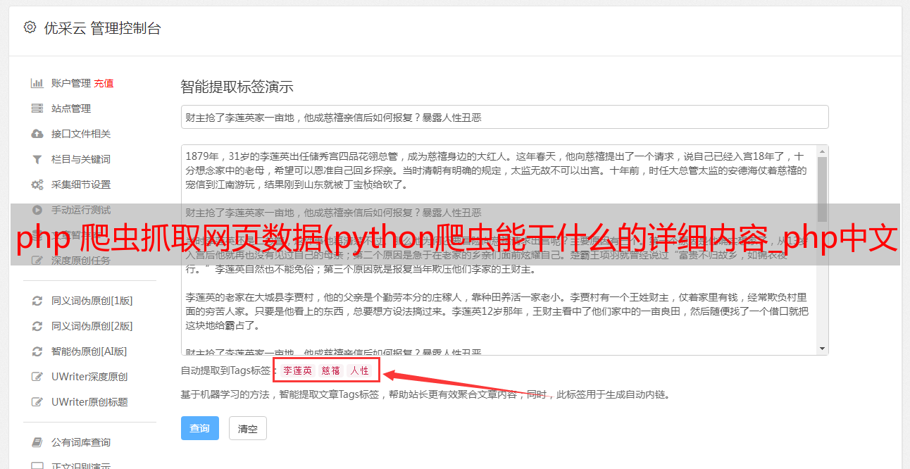 优采云 发布时间: 2021-09-15 10:11php 爬虫抓取网页数据(python爬虫能干什么的详细内容_php中文网(图))