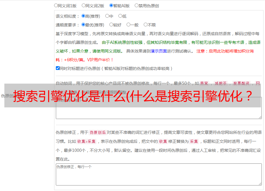 搜索引擎优化即Search Engine Optimization,简称SEO,是指利用搜索引擎规则提高网页(含网站)在有关搜索引擎内自然排名一门手艺。