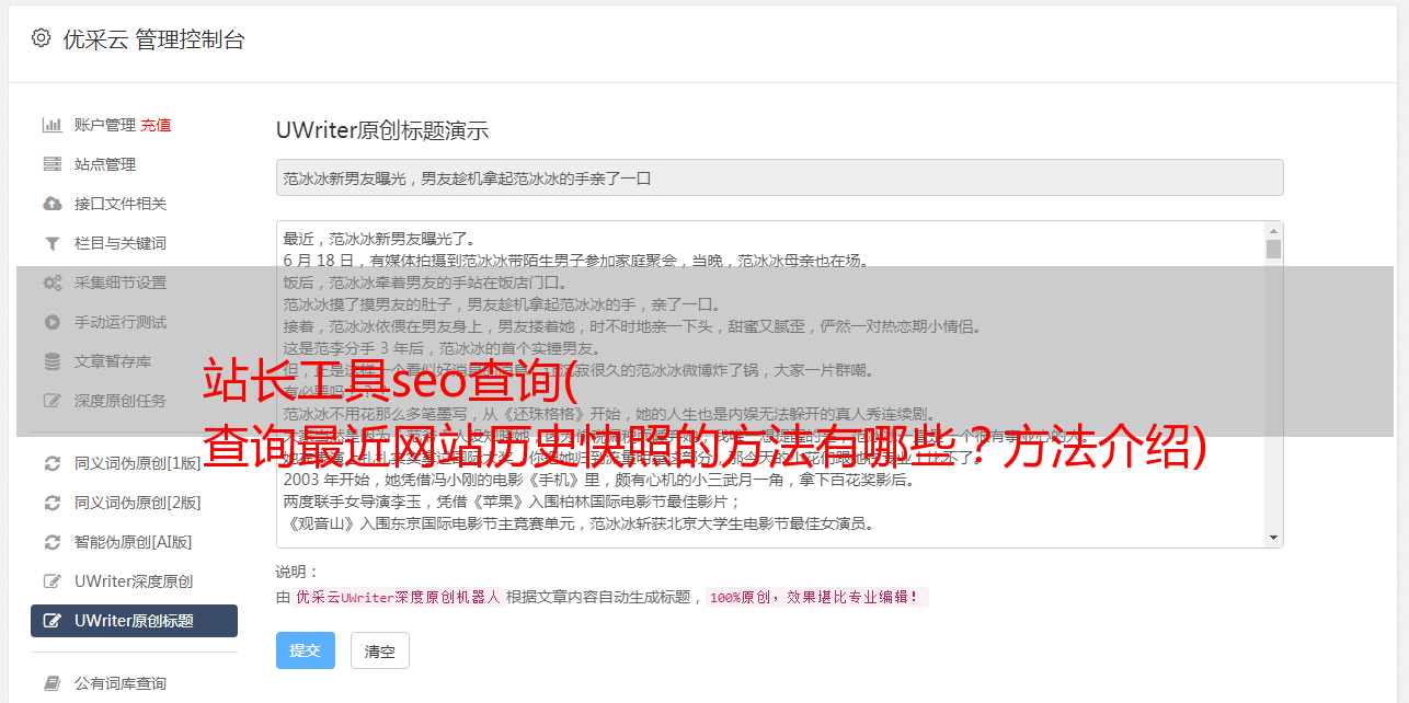 站长工具seo查询( 查询最近网站历史快照的方法有哪些?方法介绍)