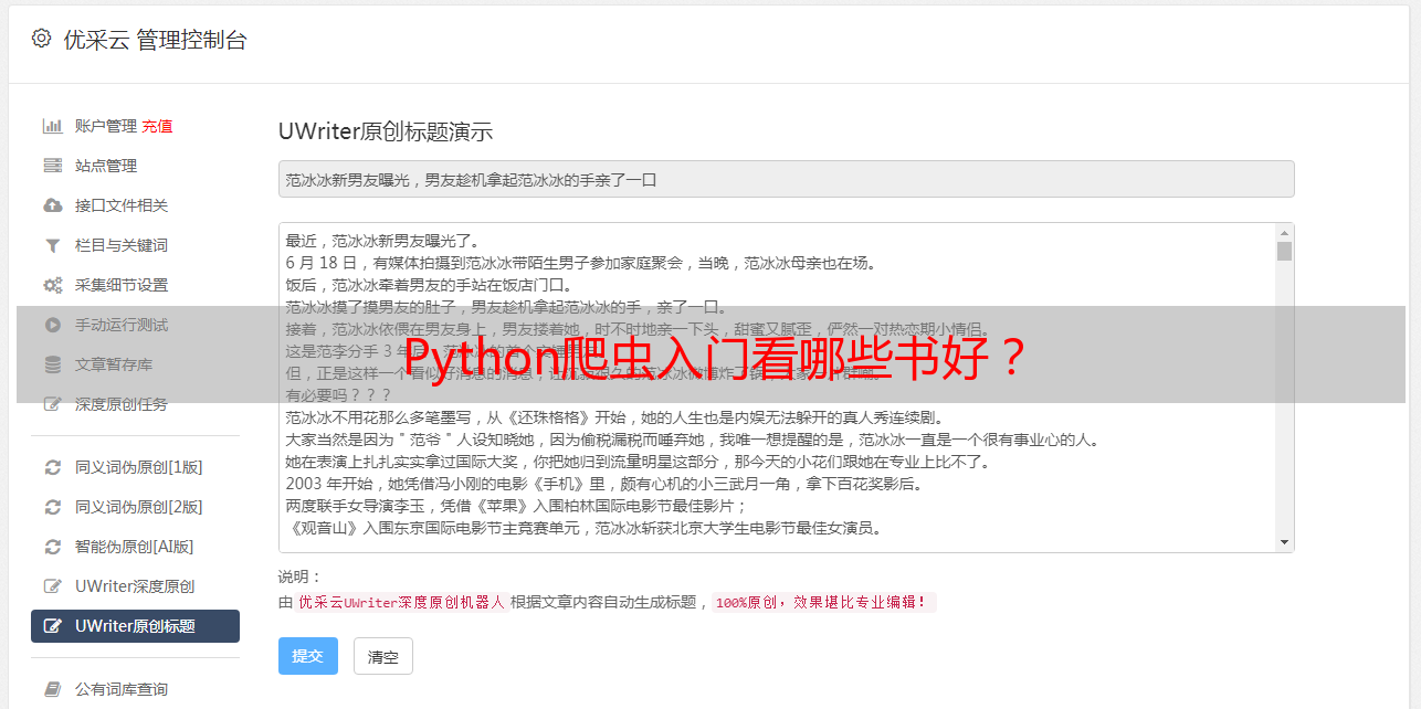 优采云 发布时间: 2020-05-30 08:02生活在21世纪的互联网时代,各类技术的发展堪称是瞬息万变,这不明天编程界又出现一位“新星”,他的名子称作Python,目前Python早已超过Java而居于编程排名语言的第五位了。随着Python语言的火爆发展,目前很多人都在想学习Python,那么Python爬虫入门看哪些书好呢?小编为你推荐一本书,*敏*感*词*教你学Python。