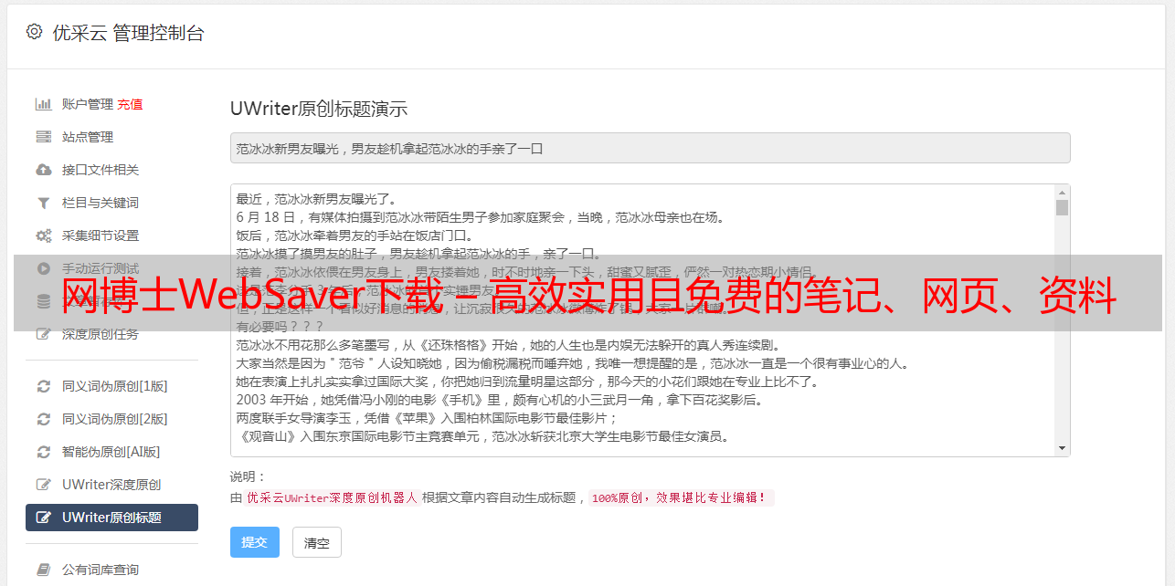优采云 发布时间: 2020-08-24 20:35网博士WebSaver下载 – 高效实用且免费的笔记、网页、资料搜集管理软件