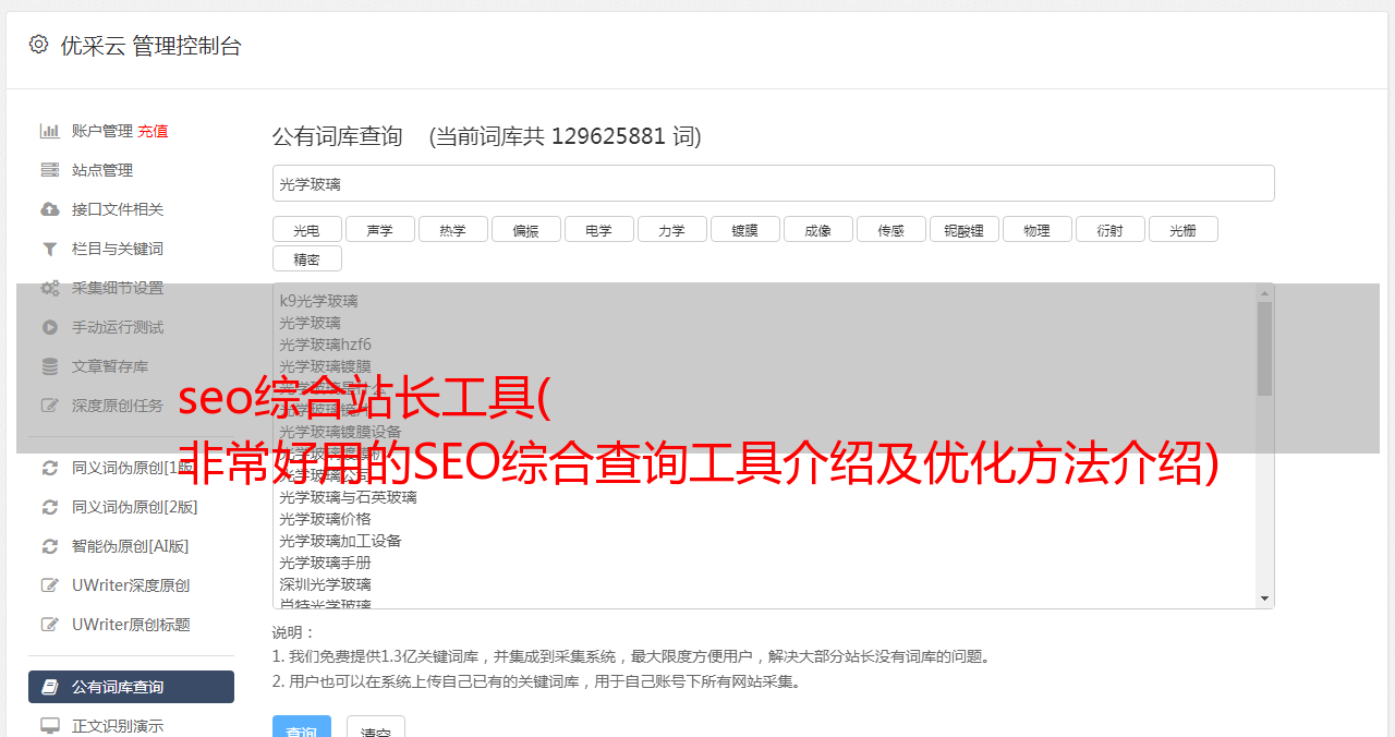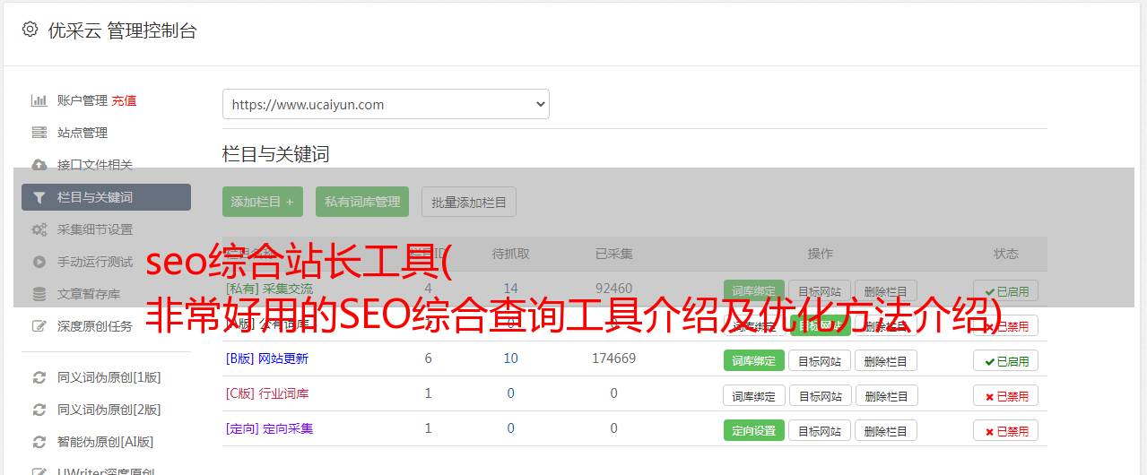 优采云 发布时间: 2021-09-16 01:03seo综合站长工具(
