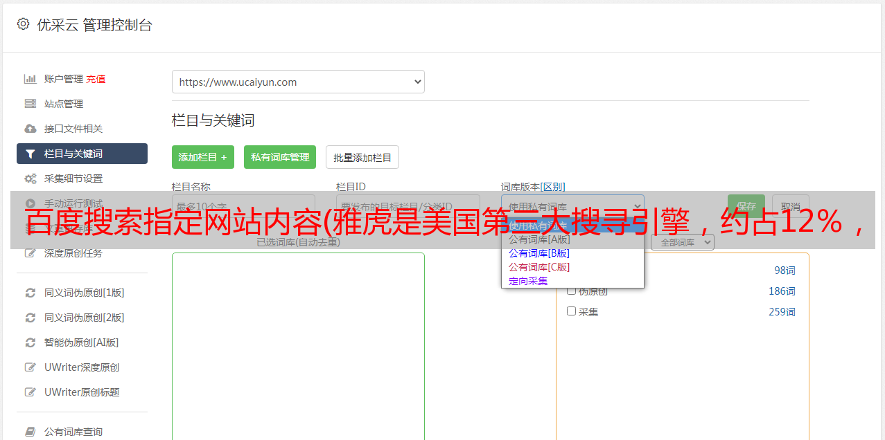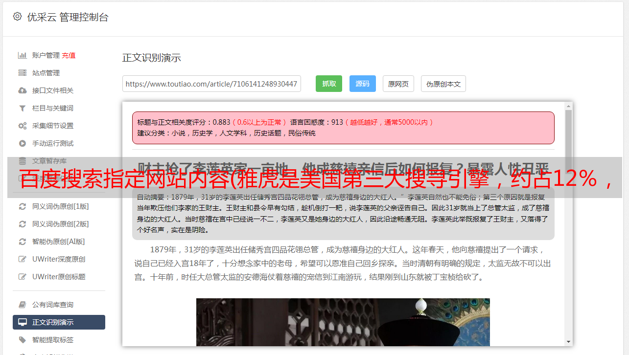 优采云 发布时间: 2021-09-16 01:05百度搜索指定网站内容(雅虎是美国第三大搜寻引擎,约占12%,无论数百万仍领有200万用户)
